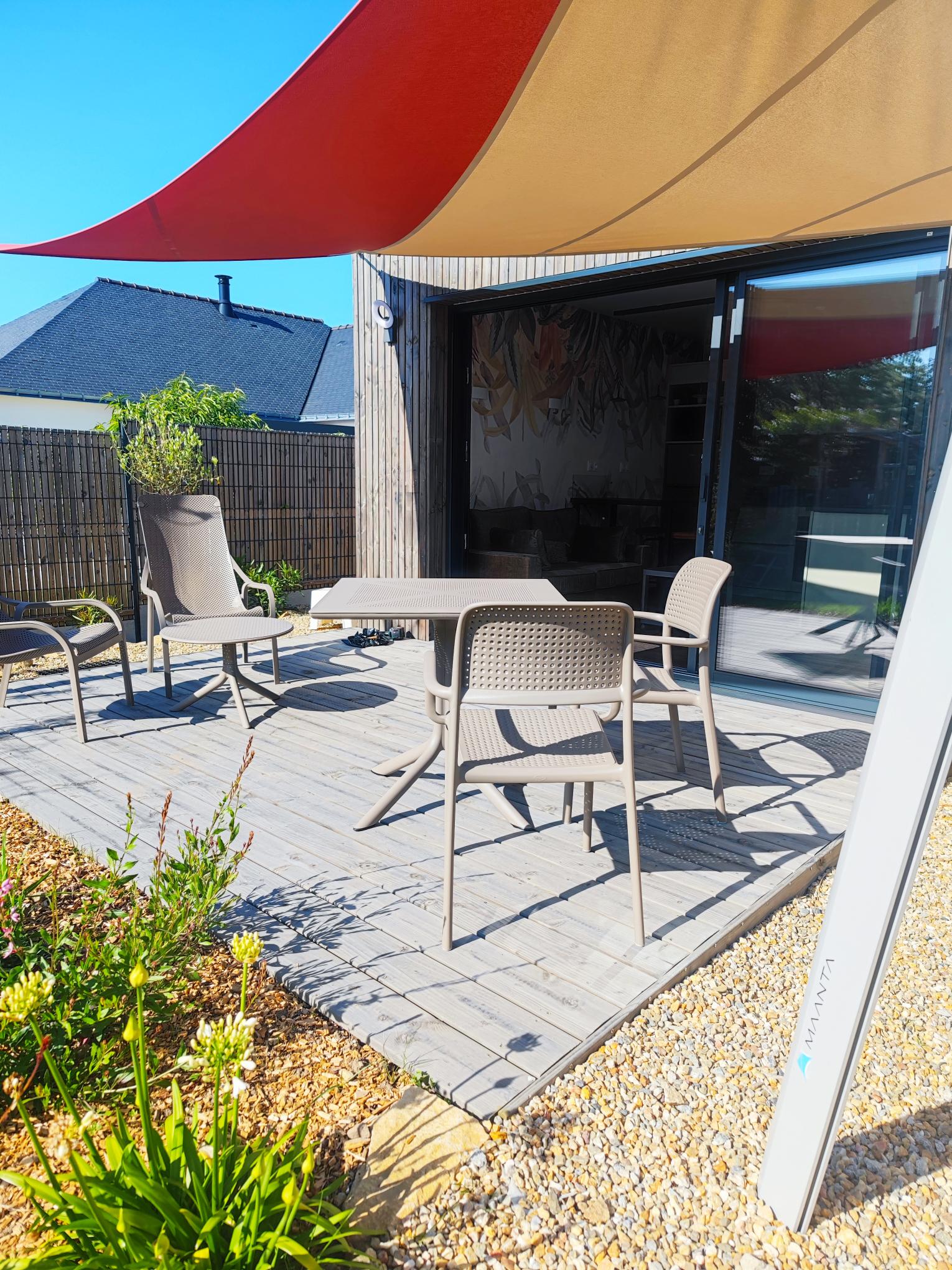 La terrasse aménagée et le jardin privé invitent à des moments simples :